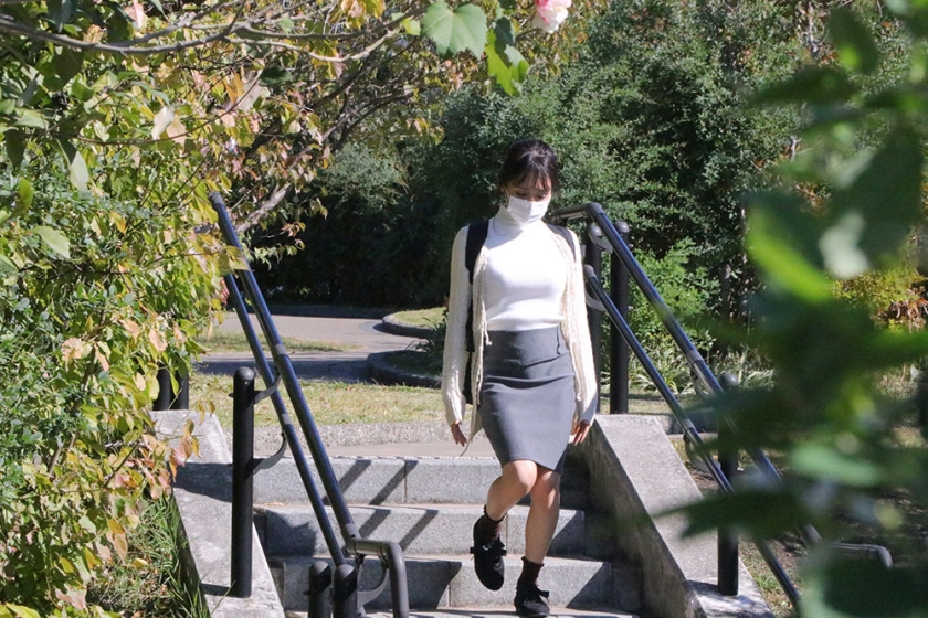 She looks serious and has a class, so she is probably a child of the famous Shuku● Women's University near the shooting location.