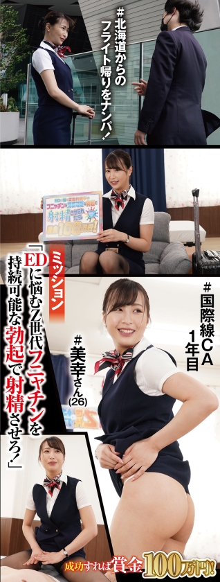 #26歳 #勤続1年目 #美女 #美脚 #165cm #彼氏あり #Sッ気あり Miyuki on her flight from Hokkaido. The highest rank CA with a soft atmosphere. And has beautiful legs. The beauty style of 165cm is also nice in the back. Constriction, erotic ass. A smile that spills out. What? The feeling of taking this guy as a cueball. "My boyfriend's staying power?" "What (laughs)?" "I feel like I'd be happy if you tried a little harder" is elegant and erotic (laughs). Actually, today's project is SEDz. When I told him, "If you make an ED funyachin boy who is troubled by his bare thighs ejaculate with a sustainable erection, you will get a prize of 1 million yen!" "Money? I want it" "This is helping people ...", while showing hesitation, hugged with the ED boy, stroked his legs, took off the T-back that was "not a company rule, but my favorite ♪" and started the black strike bare crotch! Smooth bare thighs & nipples with stiffness. "It's getting harder" "Well, I like it to be hard... (Shameful)" I put my hands behind my back and showed him my black. Isn't it getting a little damp? "I'm a little wet" He also wants to make raw cocks and apply lotion to each other! Miyuki has a good hand. There are more stains on my crotch. "I leaked ♪ it", "It ♪ feels good", "Ah, ah~mm, I'm going to come out~" Bisher and squirt with slimy bare thighs. With his fingering, "Maybe it was accumulating" "Oh, it's going to happen!" he is full of confidence and goes around to blame with Gingin's decamara! "Wait and wait", "I have a boyfriend!", "Life will interfere with my work", but before I know it, I play with my in cowgirl position! Get a prize with a doku doku vaginal shot as it is! Let me be more sustainable and gain confidence! And big breasts are rubbed and nipples licked. Then my nipples are so sensitive that they seem to. Beautiful ass tingling with vibrator blame. "Can I make you feel good?" and a. My hips are stiff and my breasts are big. The body that shines so much that it is poked is warped. "Hit me a lot in the back!", "I'm going to again", "Oh, no, no, no~" on the face. In your mouth. Even if you shoot a large amount of juice, you won't stop getting an erection by cleaning up! "I got ♪ spoken of" "It was ♪ a more SEDz than my boyfriend"