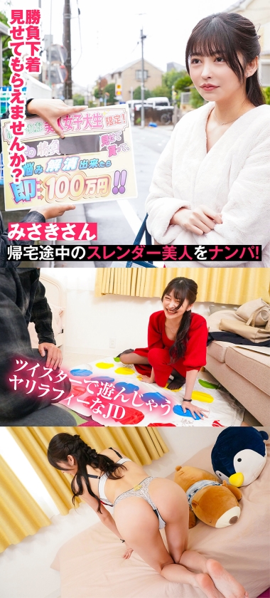#マダム風格 #お色気 #スレンダー #感度抜群学生街に張り込み, even though she is a JD, she picks up a sexy beauty "Misaki" who drifts in the style of Madame! There is also a female announcer, and what attracts the eye is the expensive calling everywhere. Erotic tension is exploding! "Huh? "How can I win?", "And 1 million yen to solve my worries?", "It's a lie, it's a lie (laughs)", but it seems that there is a shortage of money, and when I showed the wad of money, my eyes were dazzled and I said, "I want to do it .... I want to challenge ...", so I was given the OK to shoot at home. A high-class room without a student feeling. Red dress. Even though she is young, she is still a madam sex appeal Dada leak! Empty chest. I can't see the nipples. "Is it okay to wear game underwear? I just bought it today" This is it! It was super sexy. I haven't shown it to my boyfriend yet because I'm worried that he will be attracted to me. Change into game underwear and get on all fours. Landing! Touch your buttocks gently to check your sensitivity! Hikuhiku. Sensitive. "Yada, the underwear I just bought gets dirty ♪" When I told him that it was 1 million yen when I solved his worries that were too big, he said, "That's my problem" "Isn't it good?", "I'm not big thank you",, "You can't see this, do you?" And feel the potential of the technician in the movement of the hand. When I asked, there were several tens of people with experience. Look into your eyes and ask, "Does it feel good?" or "Where do you like it?" and hospitality at its best. It's erotic to be teased with your nipples, feel so much that you whisper in your ear, "What does your dick feel like?" Climax with bare thighs, entire penis coscos with chestnuts. "I want to insert it already, I want to get!" So I dared to stand up and impatient (tears). Missionary position, standing back, back like, style and underwear shine. Competition underwear is really important. A lewd JD who grins and happily drips man juice on an unequaled man's gachimuchi big whose erection does not fit! Good for erotic eyes. Wet lips good. Your mouth is leaking bodily fluids. Vacuum piston! WW who lives on a big "It's hot deep in the womb ~" "Put it inside! It feels good ♪ inside" face chase electric massager! I haven't wilted, so I can play the third and fourth rounds!