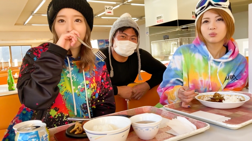大学最後の冬休みをスノボで満喫する【つむぎ】ちゃんと【ゆいな】ちゃんの女子大生2人組をナンパゲット!AV男優だと気付かれてめっちゃ警戒されるがAVの裏話に興味津々で色々話していくうちに打ち解ける。夜にコテージに呼び出すと謝礼をチラつかせ下着チェックだけでいいからとお願いする!が断られる。見た目に反してまじガード固すぎwwということでお酒を振る舞い酔わしてしまえ作戦決行ww「彼氏とのエッチは淡白で満足できない…」と愚痴をこぼし始めたのでここで一気に距離を詰めて半ば強引に唇を奪う!丁寧にキスをしてたら目がトロンとしてきたので個室に移動して優しく服を捲る。細身なのにHカップもあるスレンダー巨乳ちゃん!これは大当たりwwクンニで「気持ち良い…」と漏らしたので淡白な彼氏とのSEXじゃ味わえない様なネットリとした責めにビクビクと感じまくりww完全に堕ちた【つむぎ】ちゃんは男優のチ●コの大きさ硬さに驚きながらそのままパックンちょ!美味しそうにフェラする姿はとてもカワイイ!ウェアを着せたまま正常位で挿入。マ●コがキツキツで入れただけで気持ち良すぎるwゆ〜っくりと動いて体全体で快楽を共有。そしたら騎乗位でバックでどんどんエロくなっていく【つむぎ】ちゃん。そんな姿に思わず中出し!wまだまだ足りない!リミッターが外れた2人は2回戦目に突入。全裸になって本能のままに腰を振り続ける。最後は【つむぎ】ちゃんのキュートなお顔目掛けて顔射!!「すごく気持ちよかった…w」と彼氏とのセックスじゃ絶対味わえない、カラダも心も大満足のSEXを堪能させてあげましたww