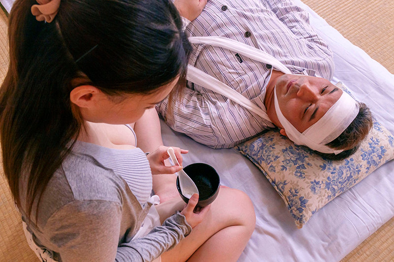 建築業界で働く夫が日頃から大変お世話になっている「親方さん」が、現場で怪我をしてご自宅で療養休業することになってしまったらしく…。週末に夫とお見舞いに行った優しい性格の妻ゆりあは、一人暮らしの独身中年で、アパートの万年床で寝たきりで療養されている寡黙な親方さんの事を心配して、平日のパート帰りに身の回りのお世話や看病などを買って出る。だがしかし水曜の午後に、寝たきりの親方さんの体を拭いていた時に…!