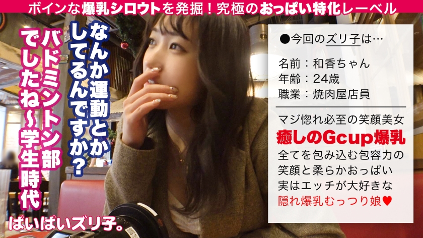 [563PPZ-003] 【Gカップ神乳のフリーフォール】和香24歳、焼肉屋店員「バドミントン部だったんで、試合中に揺れて、めちゃめちゃ大変でした。運動中だけ取り外せるように開発できないんですかね?攻殻●動隊的な感じで」【ぱいぱいズリ子。第三話】