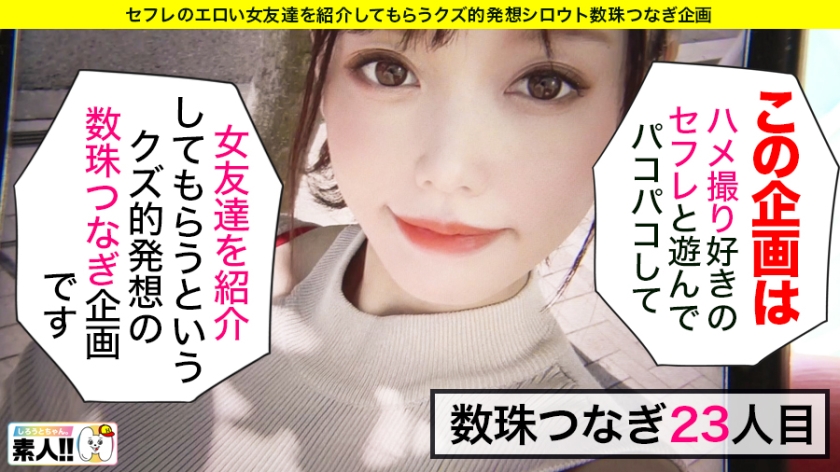 素人娘と遊んでパコってHな友達も紹介してもらう企画。今回のお友達は健全な女性専用のエステティシャンを3~4年やっていて、いらいらしたら食べて嫌なことを忘れるひろなかちゃんは現在2年位彼氏はいないそうで彼氏募集中なんだって。好みの男性はプライドを持っている人が好きで「付き合って欲しい」と言われたりするのが好きな少女マンガ読みすぎの女の子ひろなかちゃんの性感帯のうちももをさわるとムラムラしちゃったみたいなので唇をあわせ美尻やクリをいじったりクンニすると「はぁぁ~」と軽やかなあえが声を出すひろなかちゃんのアソコに指を入れるとグチョグチョと音をたてるマ○コに電マをあてると「もうすぐイク、イクそう、イクッ、あっぁぁ~、イクイク」と腰を動かしながら昇天!さらに激クンニされると二度目の昇天をしたひろなかちゃんはチ○ポをジュルジュルと美味しいそうに舐め「ス・ゴ・イ」と言いながらバックから挿れると「うっうっ、うっ、あぁ~、気持ちぃ~」と言うひろなかちゃんに激ピストンすると「イクイク、あ~、それそれ~、イク~~、気持ちぃぃ」とよだれをたらしながら絶頂!!「気持ちぃぃ、これはヤバい~」とあえぐひろなかちゃんのお腹にザー汁発射しました。言葉と行動を大事にする愛犬が大好きで独り言が多い笑顔がかわいいひろなかちゃんは【一緒にご飯を食べにいくと「男いないかな?」と言うヤリマンを紹介してくれました】