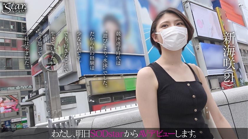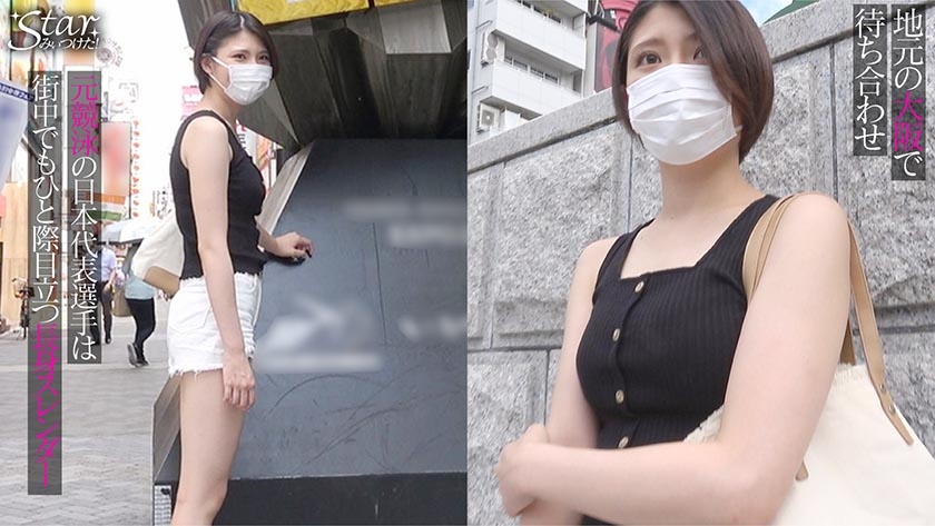 大阪は道頓堀。この日待ち合わせをしていたのは、元競泳の日本代表選手でありAVデビューを控えているアスリート・新海咲ちゃん。華々しい実績を持ち、高校時代にはジュニアの世界大会で金メダル獲得歴もある彼女。175センチの高身長に、スラッと伸びた脚が美しい。水泳で慣れたのもあり、肌を露出することに抵抗がないそうで、肩出し&ショートパンツの私服はなんともセクシー!翌日にデビュー作品の撮影を控えており、この日はテスト撮影。咲ちゃんの地元にお邪魔して、通い続けたスイミングスクールや学校をめぐったあとは、ラブホに入りSEX開始!世界の大舞台を経験したのもあり、意外と緊張していないと言う彼女だが、服を脱がされると自然と乙女の恥じらいが!撮影を忘れて快楽にのめり込んでいく咲ちゃんでした。