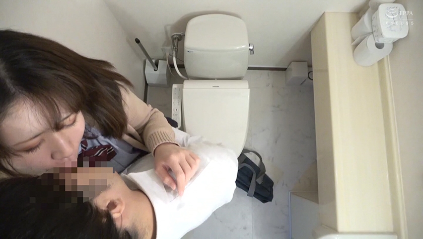 お金がない学生カップル、マンションの陰に隠れていきなりおっぱじめちゃってます!誰が見てるかもわからない場所で最後までするのはマズイと思ったのか、公衆トイレに移動してハメまくり決定!手っ取り早くセックスできるのはやっぱりトイレなんですね^^ミニスカをめくりあげてマ○コに指を入れただけで「アア!///」と嬌声!お互い貪るように合体し、時折外から物音がする中、最後まで本気で感じて中出しまでされちゃうJKでした!
