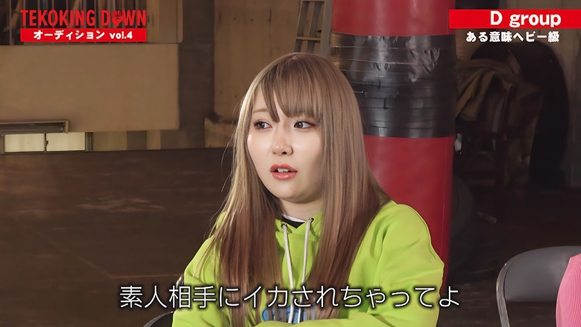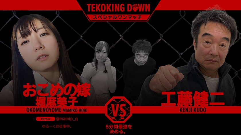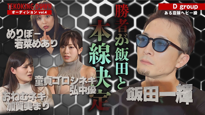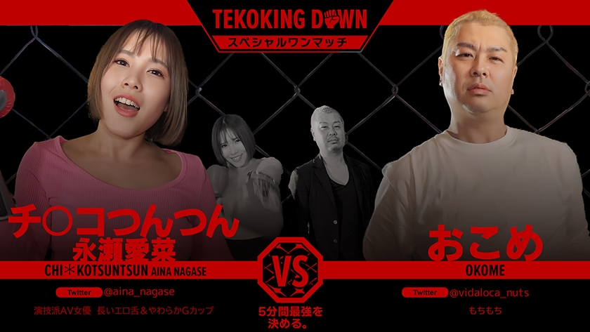 「5分間最強を決める!」というコンセプトで始まったTEKOKING DOWN。5分間でイカせられなかった選手たちは延長戦として逆にイカされるという過酷なルール。オーディション参加者は年齢・性別・身長・体重はもちろん、手コキ経験も不問。ルールは手コキ・フェラ・パイズリなど、挿入以外で5分以内に射精させる事が出来れば勝利。ローション・電マ・オナホールといった凶器も使用可能。2.0ではC,Dグループと猛者たちが集ったTEKOKING DOWN、果たして最強は誰だ!?