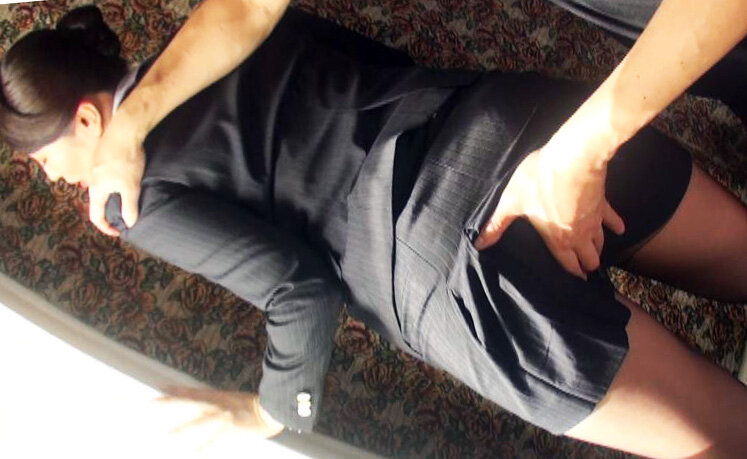 ・パンスト越しに美尻を揉みしだき